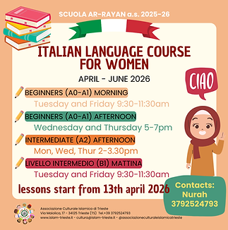 The basic Italian language course aimed at foreign women of any age and nationality offers the opportunity to acquire the necessary knowledge for daily communication, notions of grammar and a broad vocabulary in a welcoming and familiar environment.